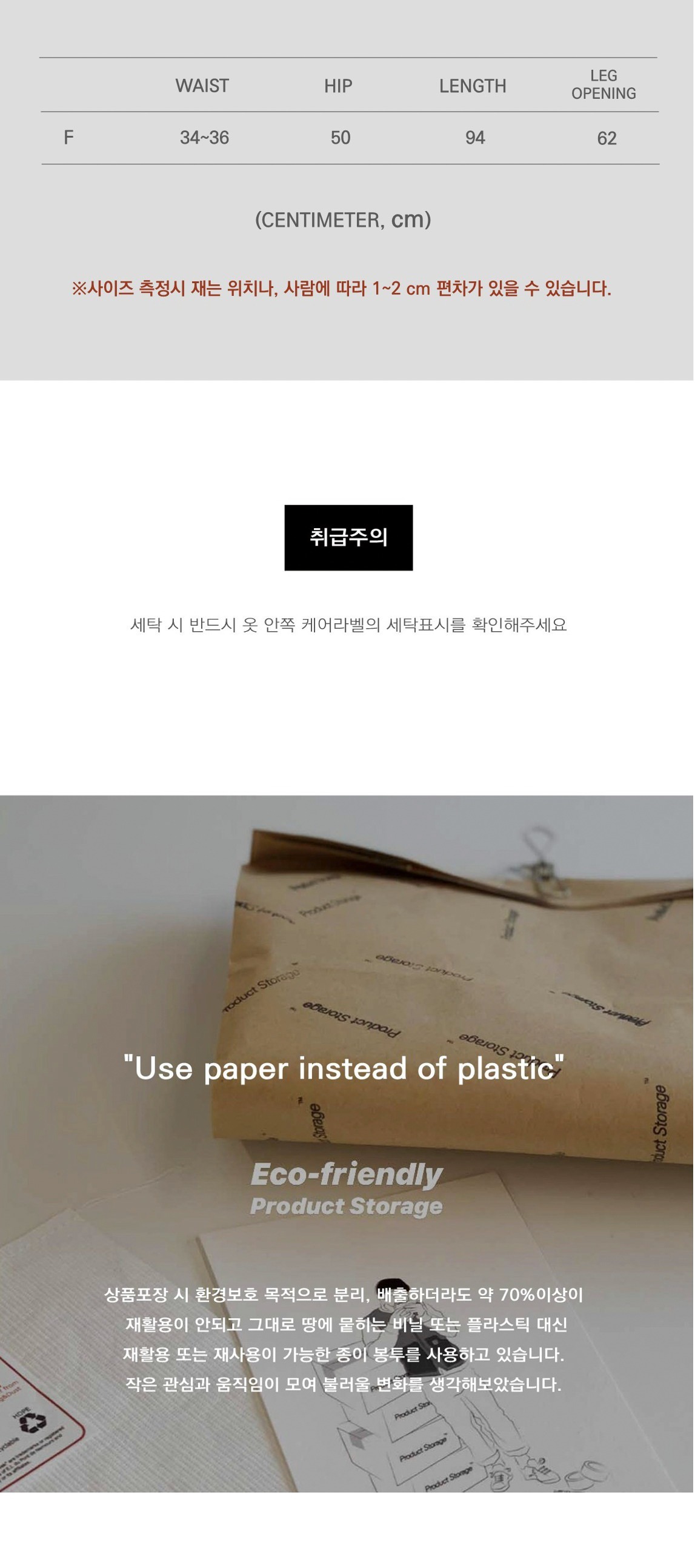 상품포장 시 환경보호 목적으로 분리, 배출하더라도 약 70%이상이 재활용이 안되고 그대로 땅에 뭍히는 비닐 또는 플라스틱 대신 재활용 또는 재사용이 가능한 종이 봉투를 사용하고 있습니다. 작은 관심과 움직임이 모여 불러울 변화를 생각해보았습니다.